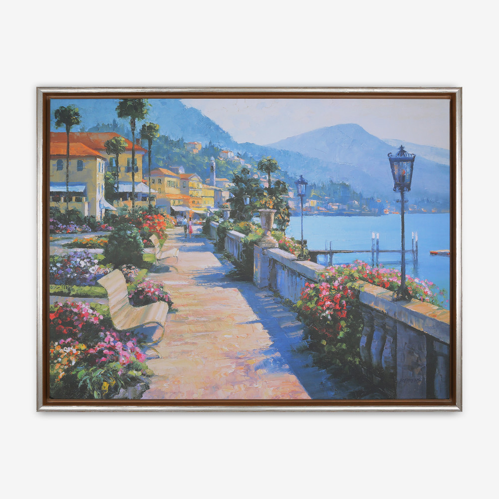 벨라지오 지역의 산책로 풍경을 표현한 작품이다. 인접한 바다와 산책로에 화려한 꽃들을 눈부신 색채로 표현하여 색상의 사치함과 시각적인 풍성함을 표현한다. 지나가는 누구라도 벤치에 앉아 주위의 풍광을 음미하고 편안한 힐링을 즐긴다. 연인이 걸어가는 뒷모습이 감상자에게 어떤 얼굴 표정과 대화의 궁금증을 증폭 하게 만들고 누구라도 이 공간에서 시간의 공유를 즐길 수 있다고 느낀다.