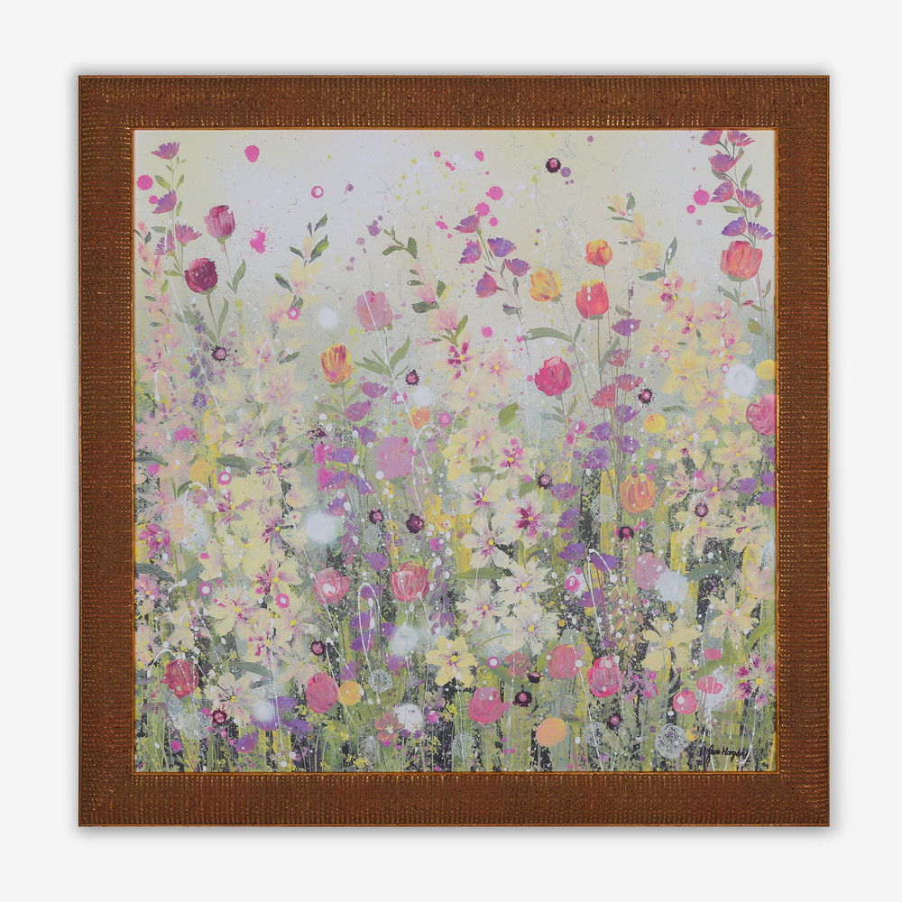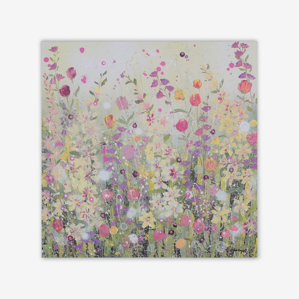 다양하게 활짝 피어 있는 꽃의 형상을 색상의 톤다운으로 조화롭고 은은하게 표현하고 있다. 같은 장소에서 서로 경쟁하듯 피어 오르는 꽃들의 모습에서 생동감과 에너지를 얻게 된다. 붉은색, 노란색, 보라색, 흰색 꽃들의 색상 조화와 배경색과의 대비로 자연미를 강조하고 있다. “꽃은 영원히 피어 있지 않기 때문에 그것이 더욱 아름답게 느껴지는 것이다.” 감상자가 캔버스의 세계 안에 들어가서 색상의 아름다움과 시각적인 풍성함을 느끼게 한다.