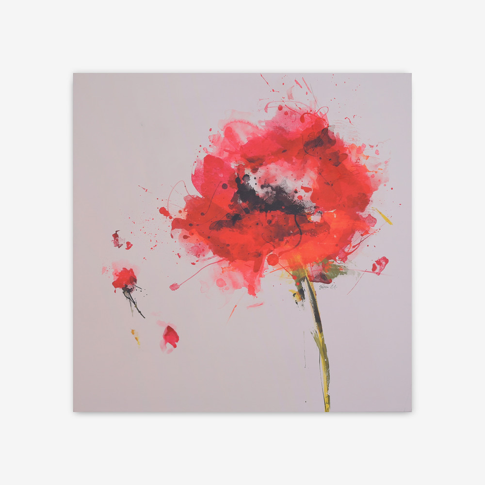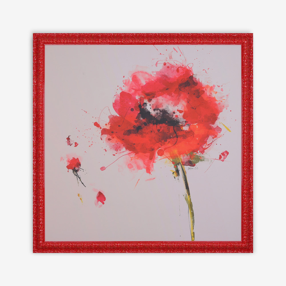 붉고 활짝 피어 는 싱그러운 꽃들을 짙은 색감으로 수채화 기법으로 표현하고 있다. 큰 꽃과 작은 꽃의 대비로 더욱 화려하고 아름답게 표현하고 있다. 빨강과 검정의 보색으로 색상의 화려함과 색채의 사치스러움을 강조하여 시각적인 풍성함을 전해주고 있다.