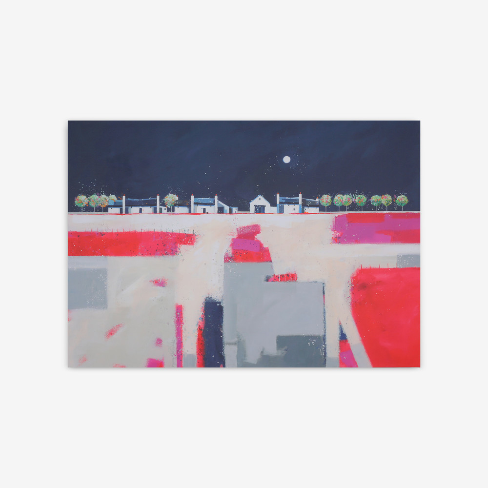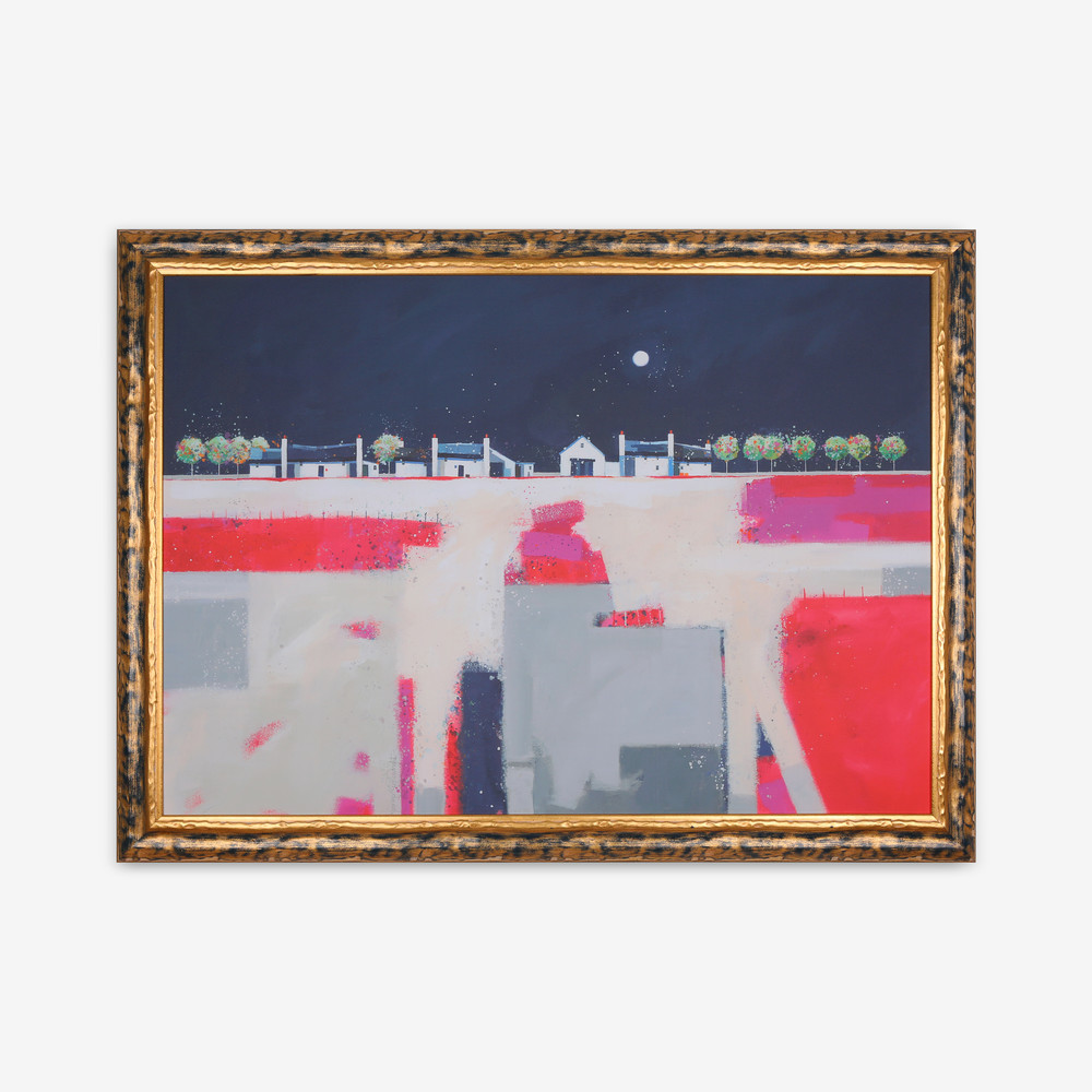 예술은 항상 우리와 가까이 있으면서 상상과 생각의 샘이 된다. 아름다운 자연을 상징하는 하늘, 달, 나무, 집, 땅이 화면을 지배하는 가운데 지면인 땅을 비구상적 묘사로 수직적으로 단순화하여 인간의 의지와 생기, 나무와 가옥을 단순화하여 수평적으로 재현하여 포용과 평온함, 가족의 사랑, 밤하늘의 달은 어둠을 밝혀주고 발산하는 광휘로 하루를 관조하고 삶을 뒤돌아보는 위안과 위로를 표현하고 있다. 색채의 대비와 색깔의 화음은 충분히 아름답다. 따라서 땅, 나무, 가옥, 밤하늘을 소재로 구성하여 자연과 더불어 살아가는 인간 삶의 사랑과 가족애를 강조하고 있다.