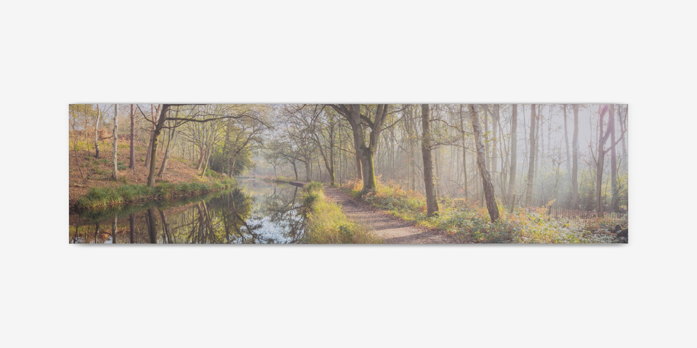뚝이 있는 숲속의 풍경을 파노라마로 표현하고 있다. 이른 아침 햇살이 떠오른 시간에 숲속의 나무 사이 외길로 걸어가는 이미지로 편안하고 자유로운 분위기를 느끼게 한다. 물속에 비치는 주위배경은 반영의 디테일을 생동감있게 표현하고 있다.