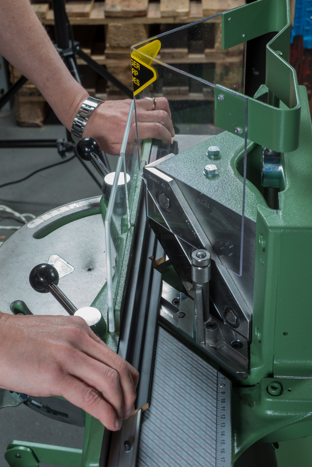 세계 최초의 45도 액자 커팅 기계입니다.
